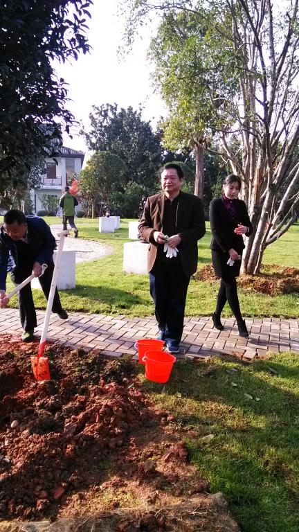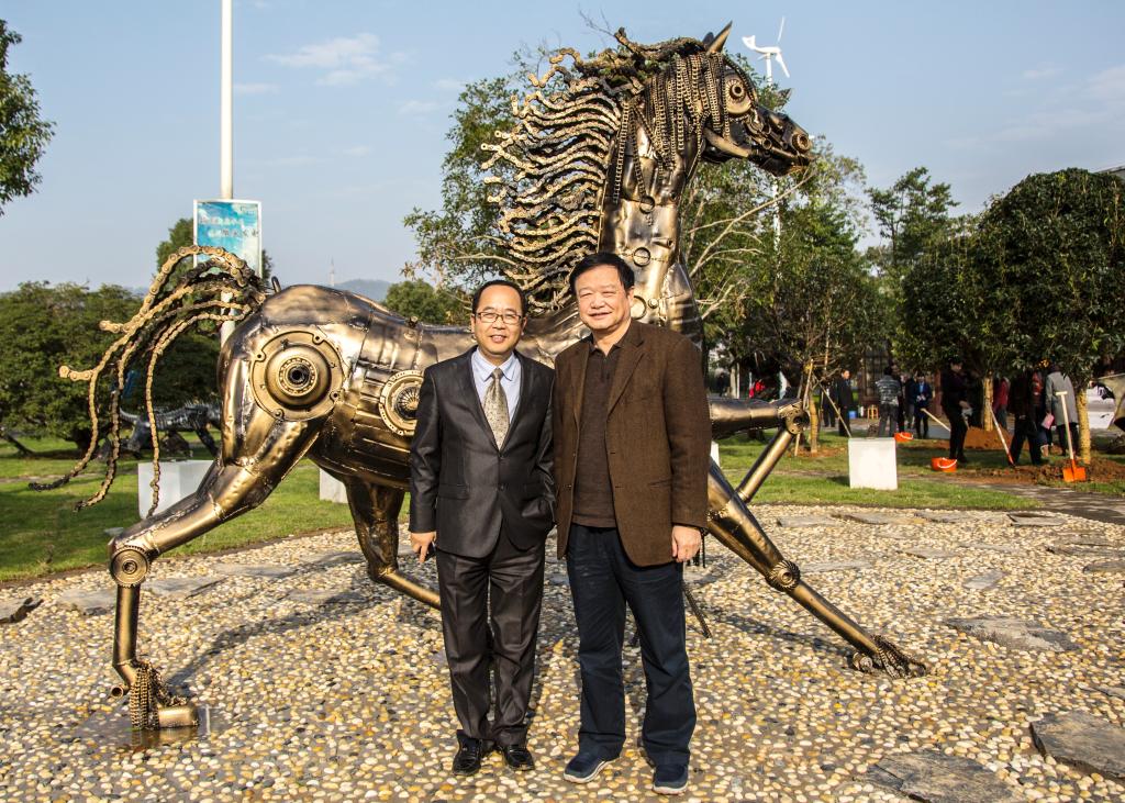原教育厅厅长张放平参观橘子洲杨刚的骏马雕塑并合影
