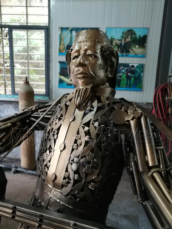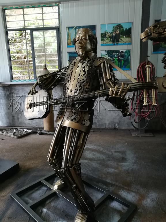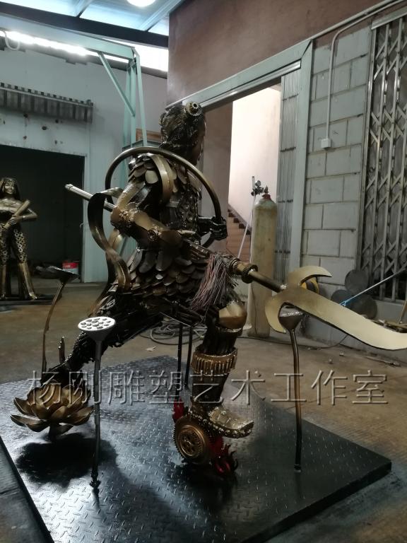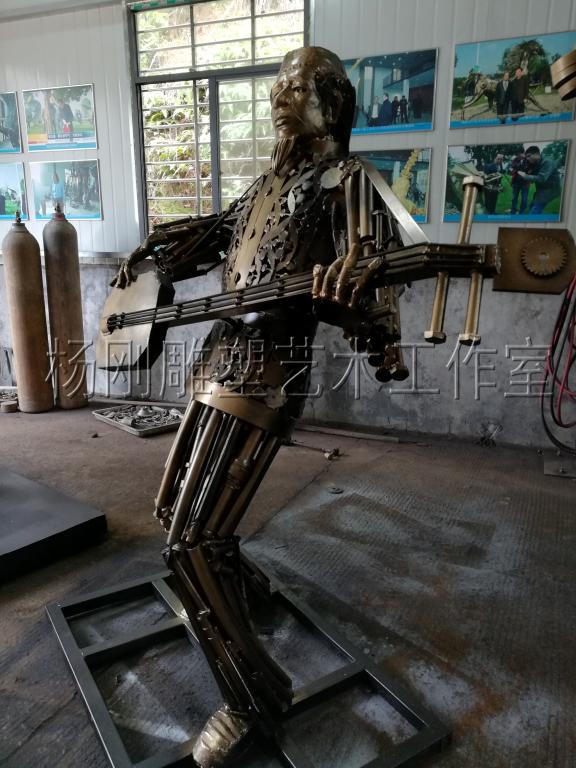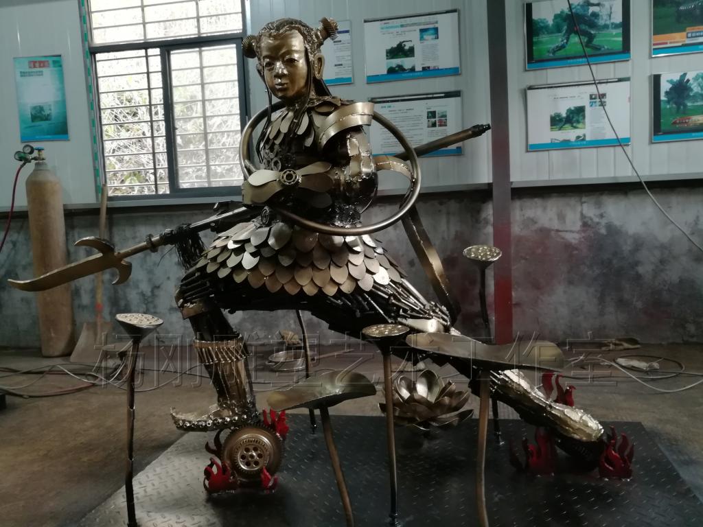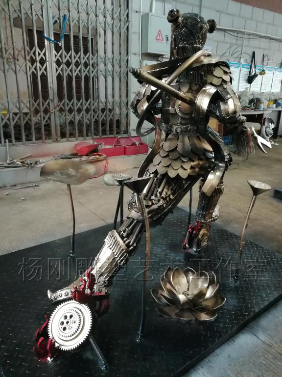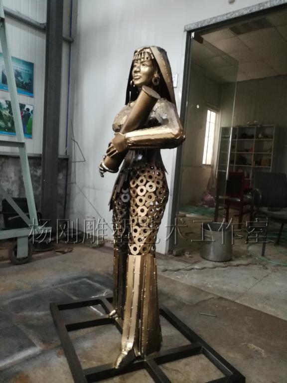 2017年3月,经过近3个月的创作,杨刚老师完成了六件雕塑新作,作品分别是《少年哪吒》、《黄河鲤鱼》、《回族少女》、《回族弹奏老人》、《行走骆驼》、《静立的骆驼》,这批作品构思独特、制作精美,杨刚老师将独特的民族艺术风情和元素完美融于现代钢铁雕塑艺术中,实属不易。这批作品已经于2017年3月24日运抵甘肃兰州,安置在兰州华宜再生资源展览馆,至此湖南涉外经济学院杨刚工作室为高原再添新景。